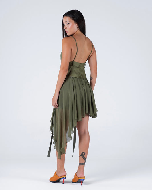Asymmetrical olive dress