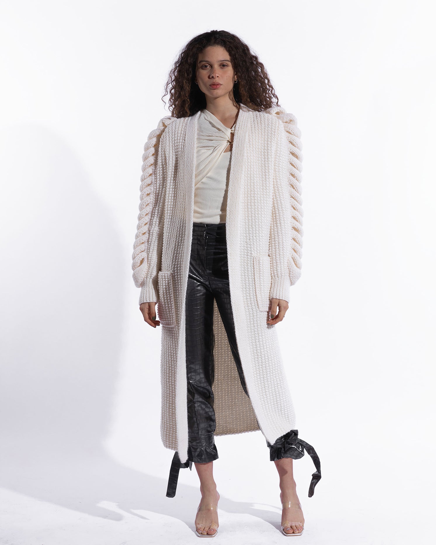 Off-white knitted coat
